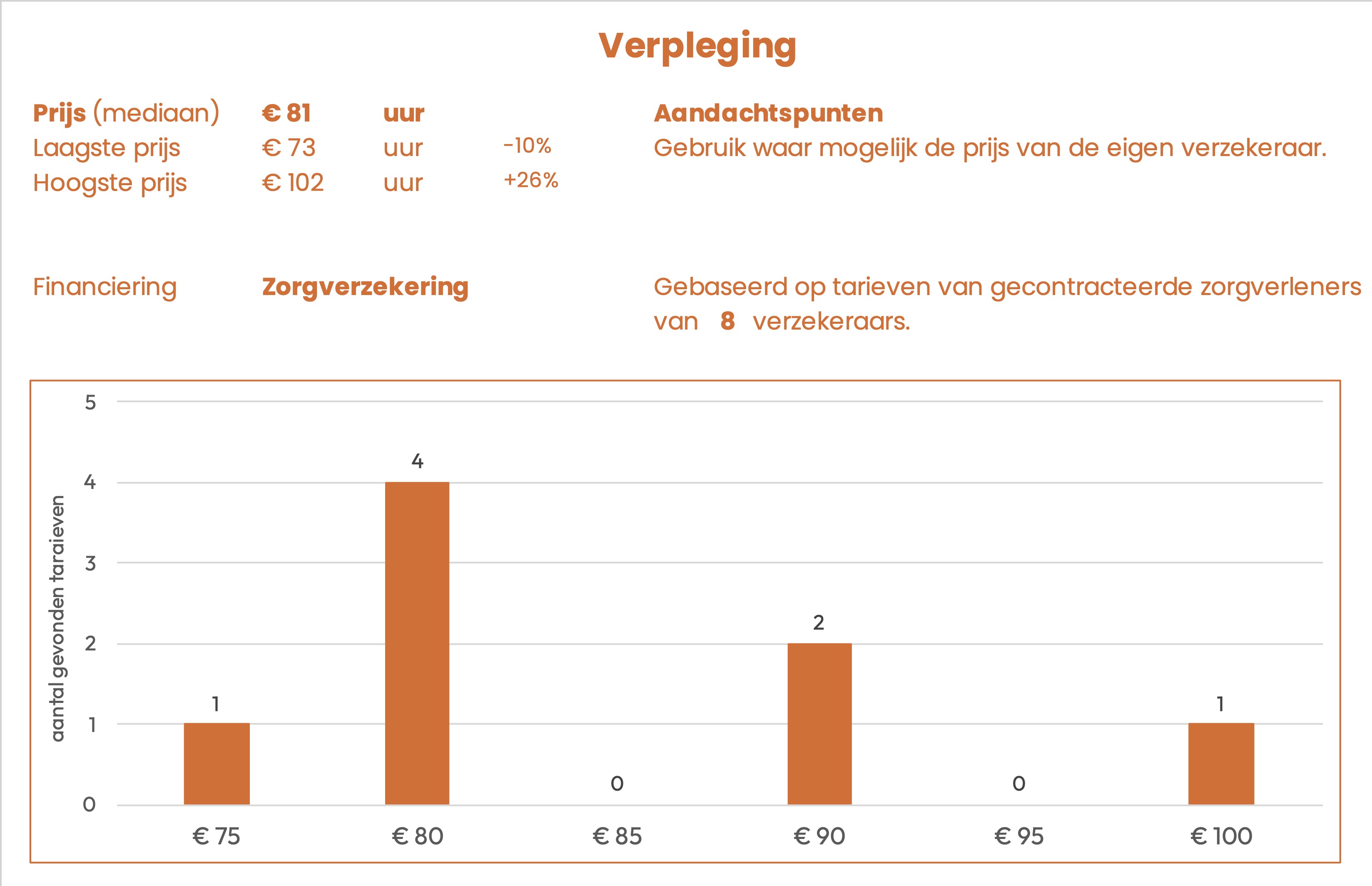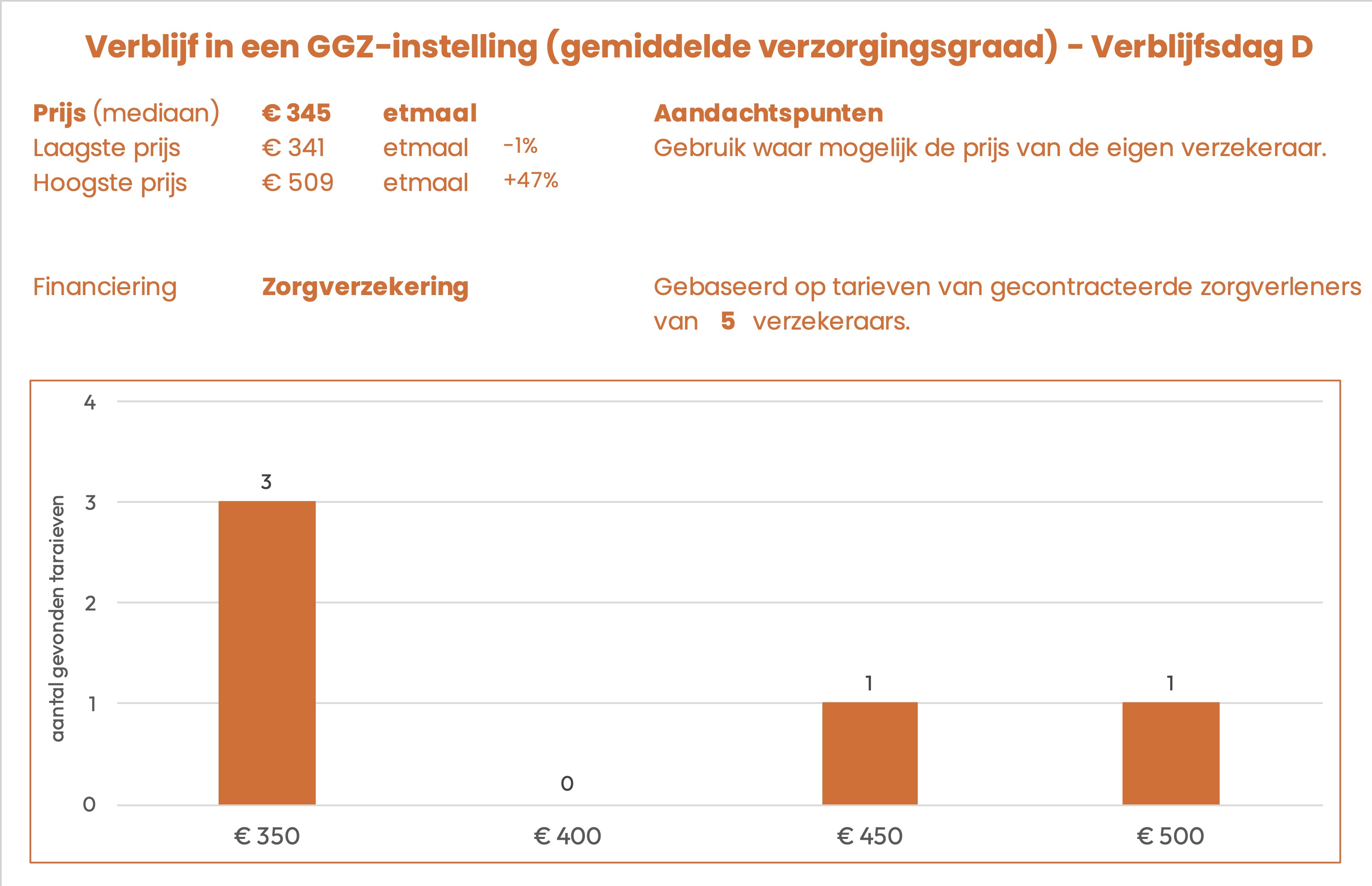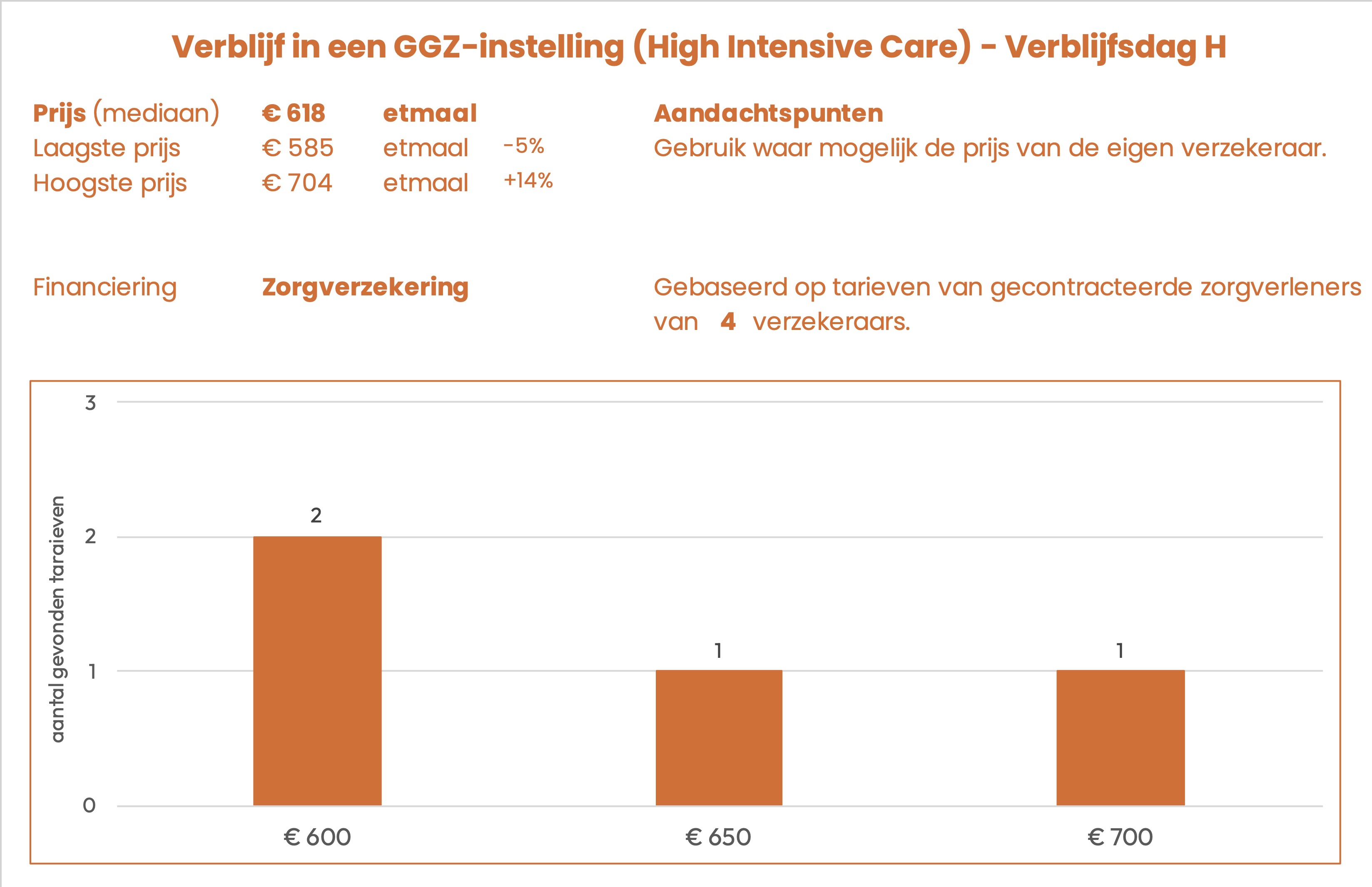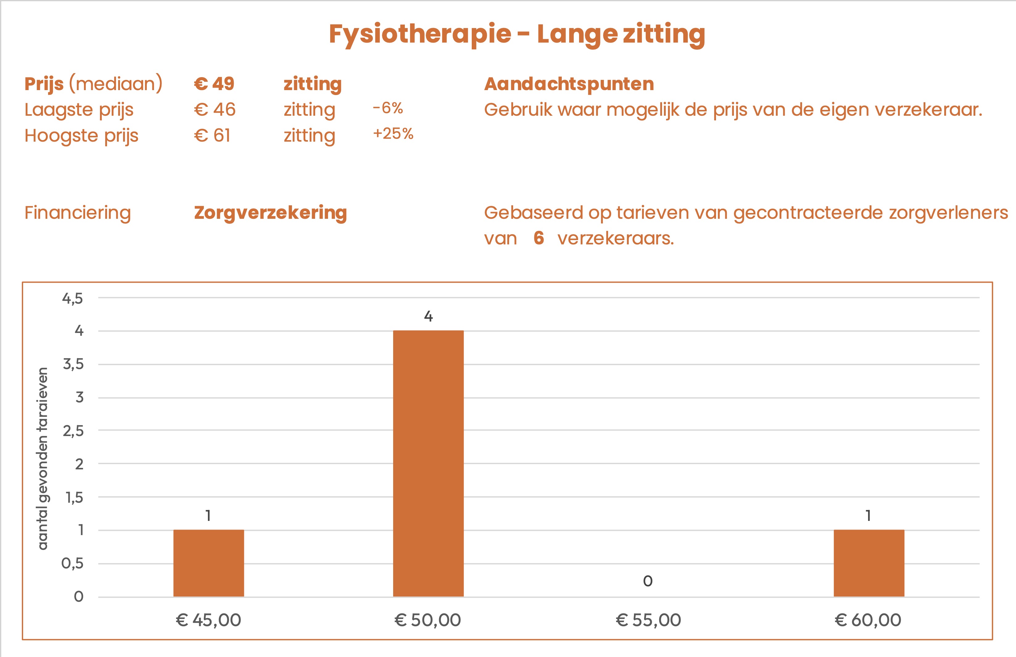 De prijzen zijn afkomstig uit openbare tarievenlijsten van 6 zorgverzekeraars. Het betreft het tarief dat gecontracteerde aanbieders in rekening kunnen brengen.