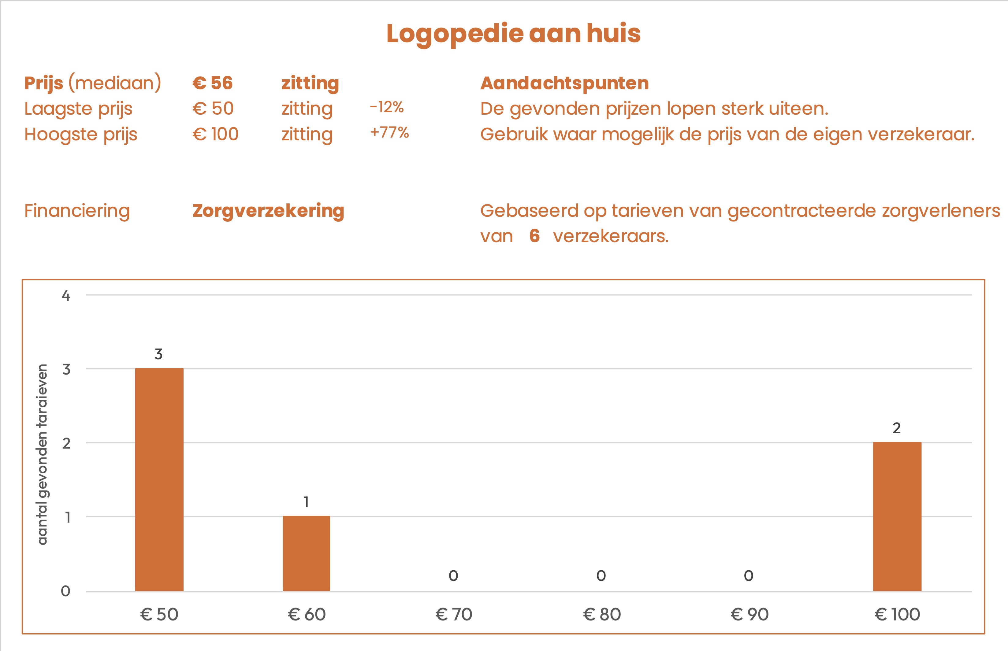 | Logopedie – op locatie | aan huis | € 41 | € 57 | zitting |