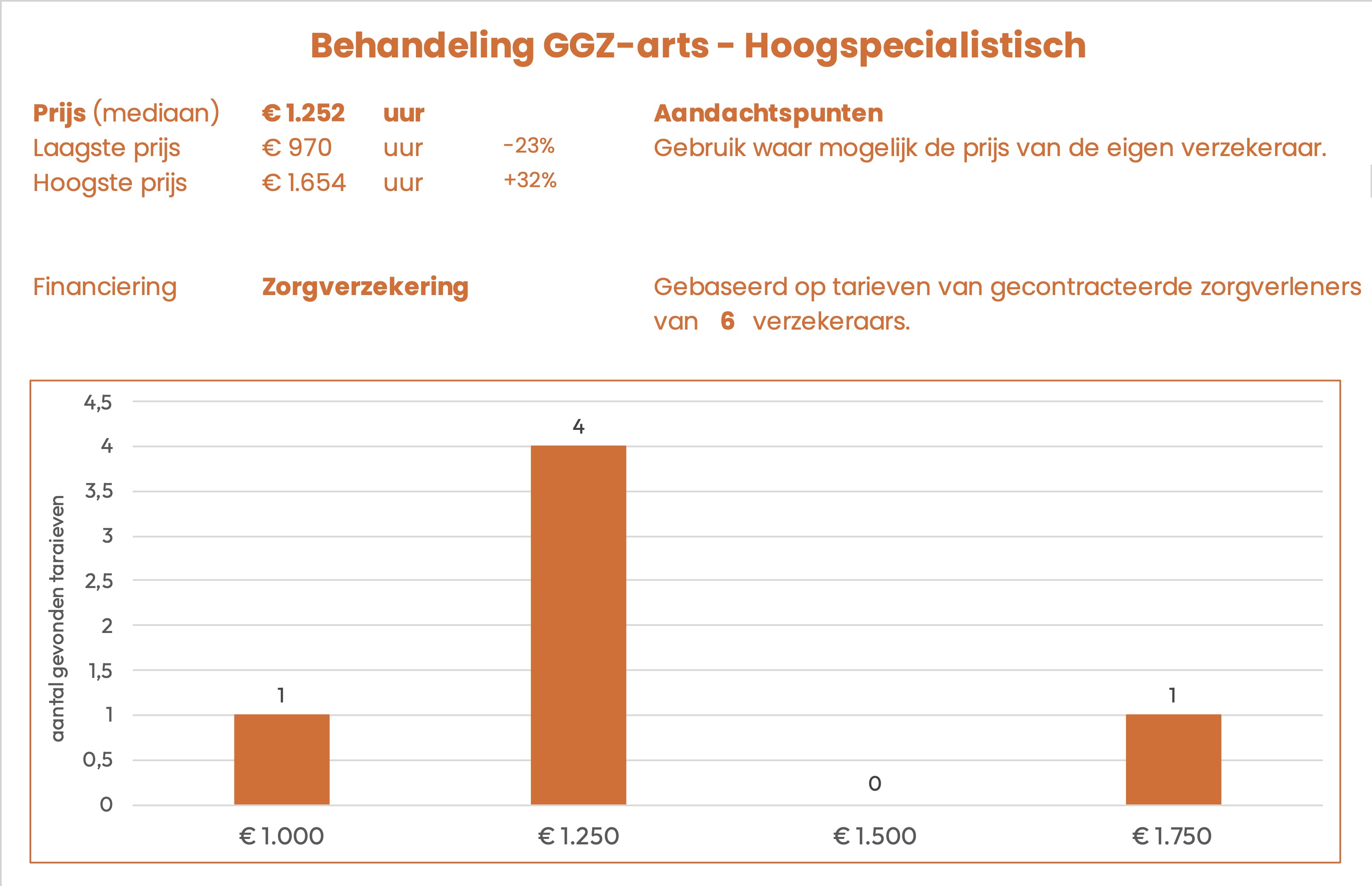 | Behandeling GGZ-arts – hoogspecialistisch | € 1.252 | per uur |