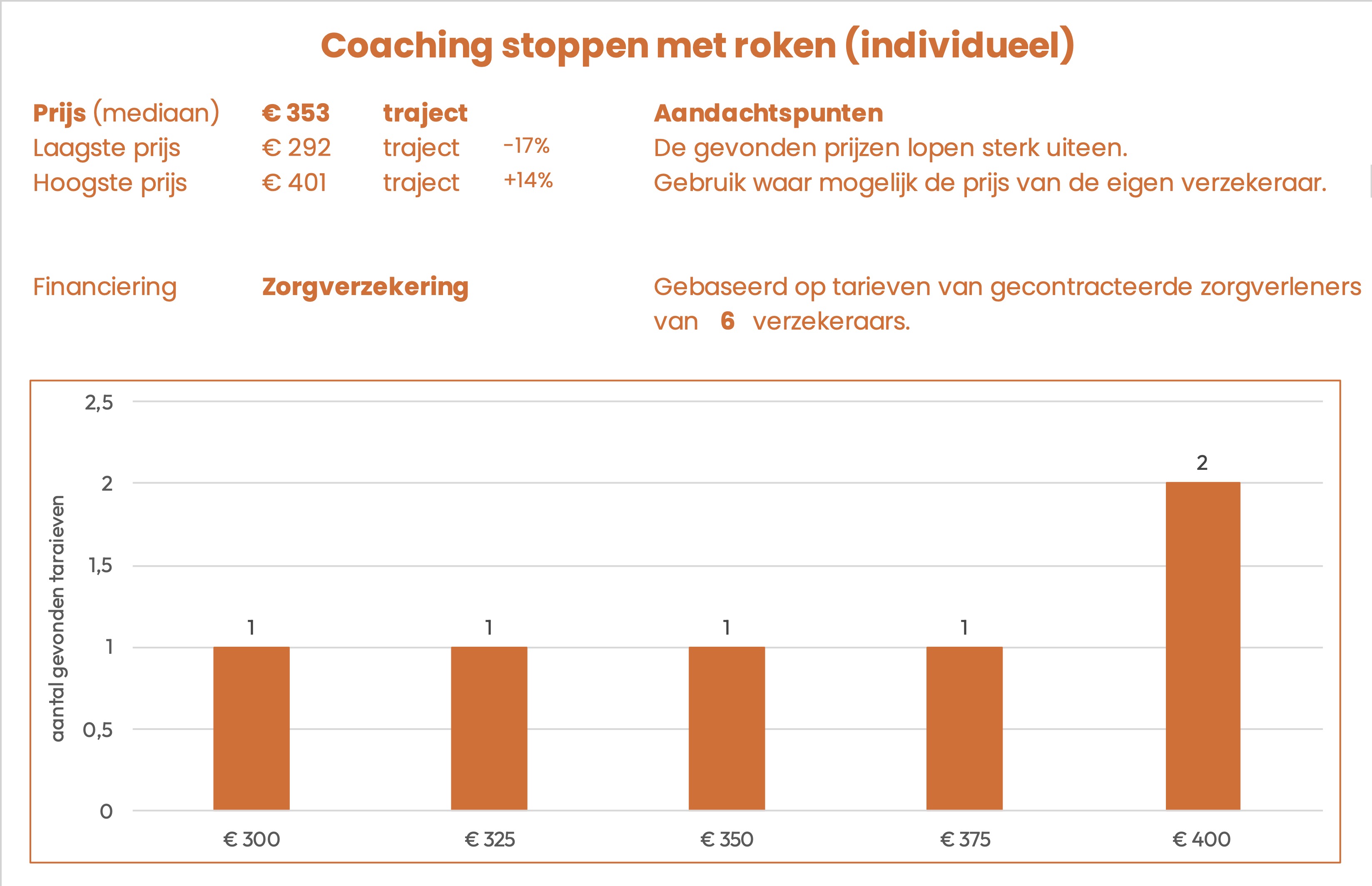 | Coaching stoppen met roken (individueel) | € 353 | per traject |