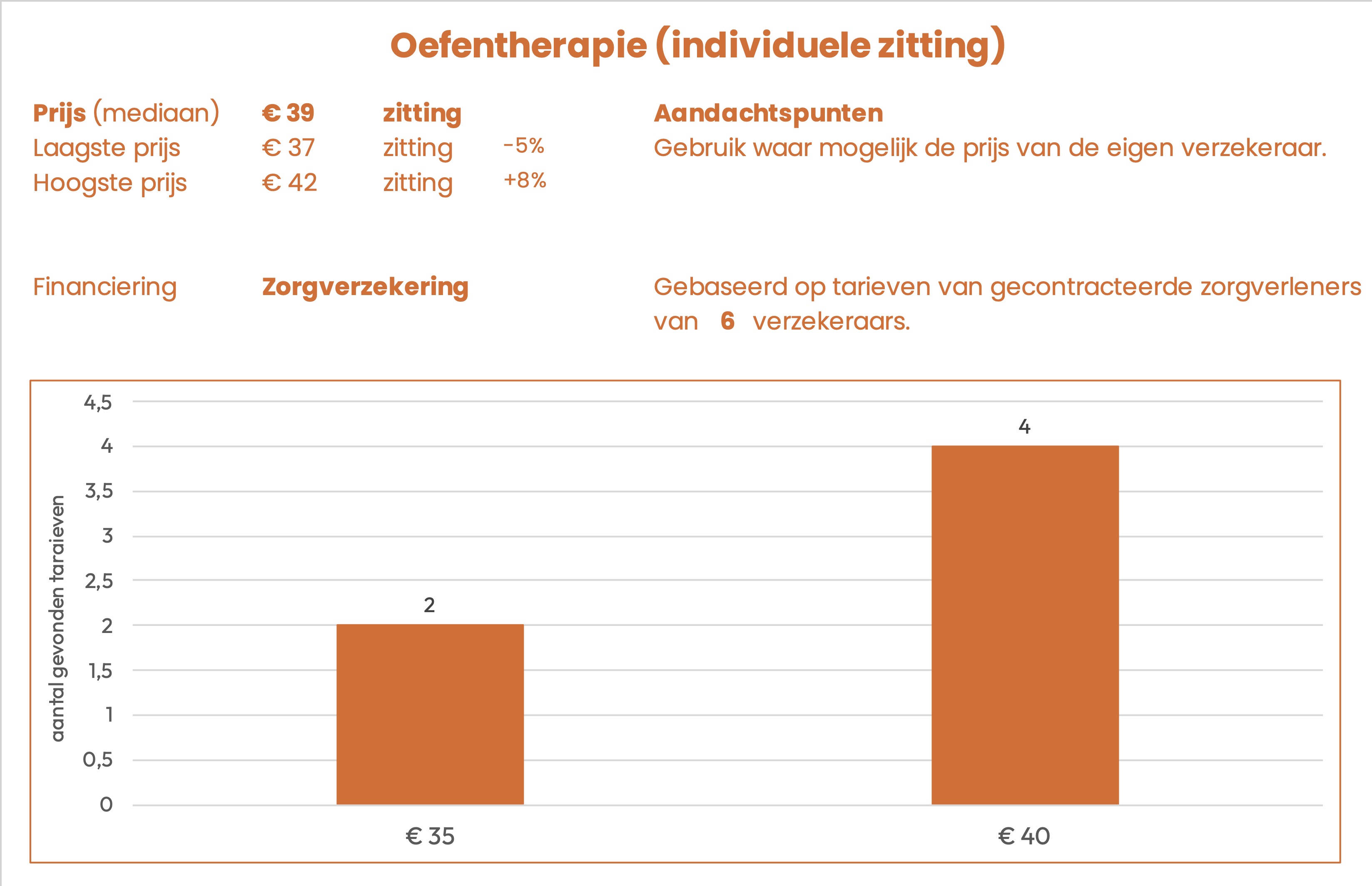 | Oefentherapie – op locatie | aan huis | € 39 | 52 | zitting |
