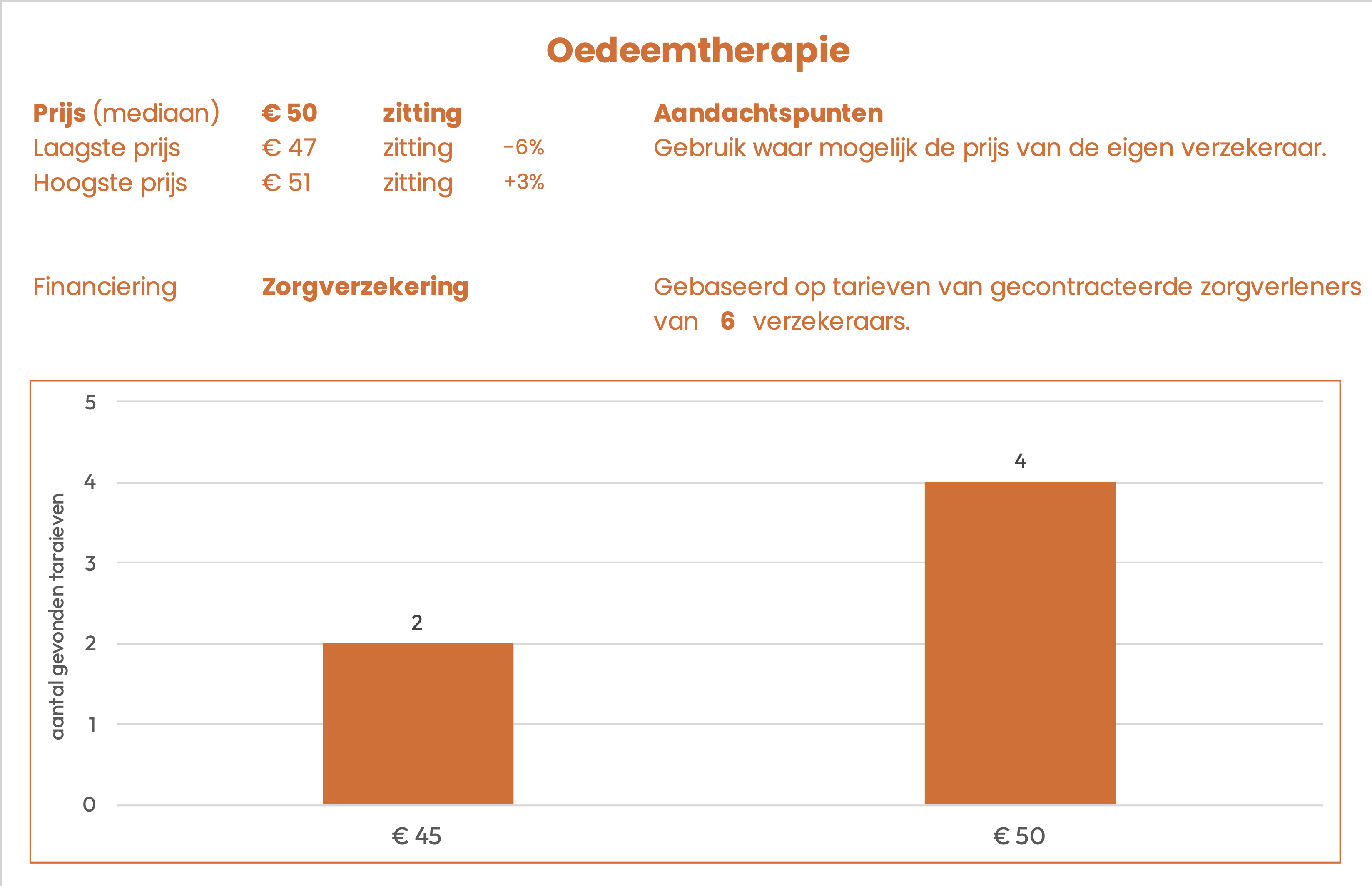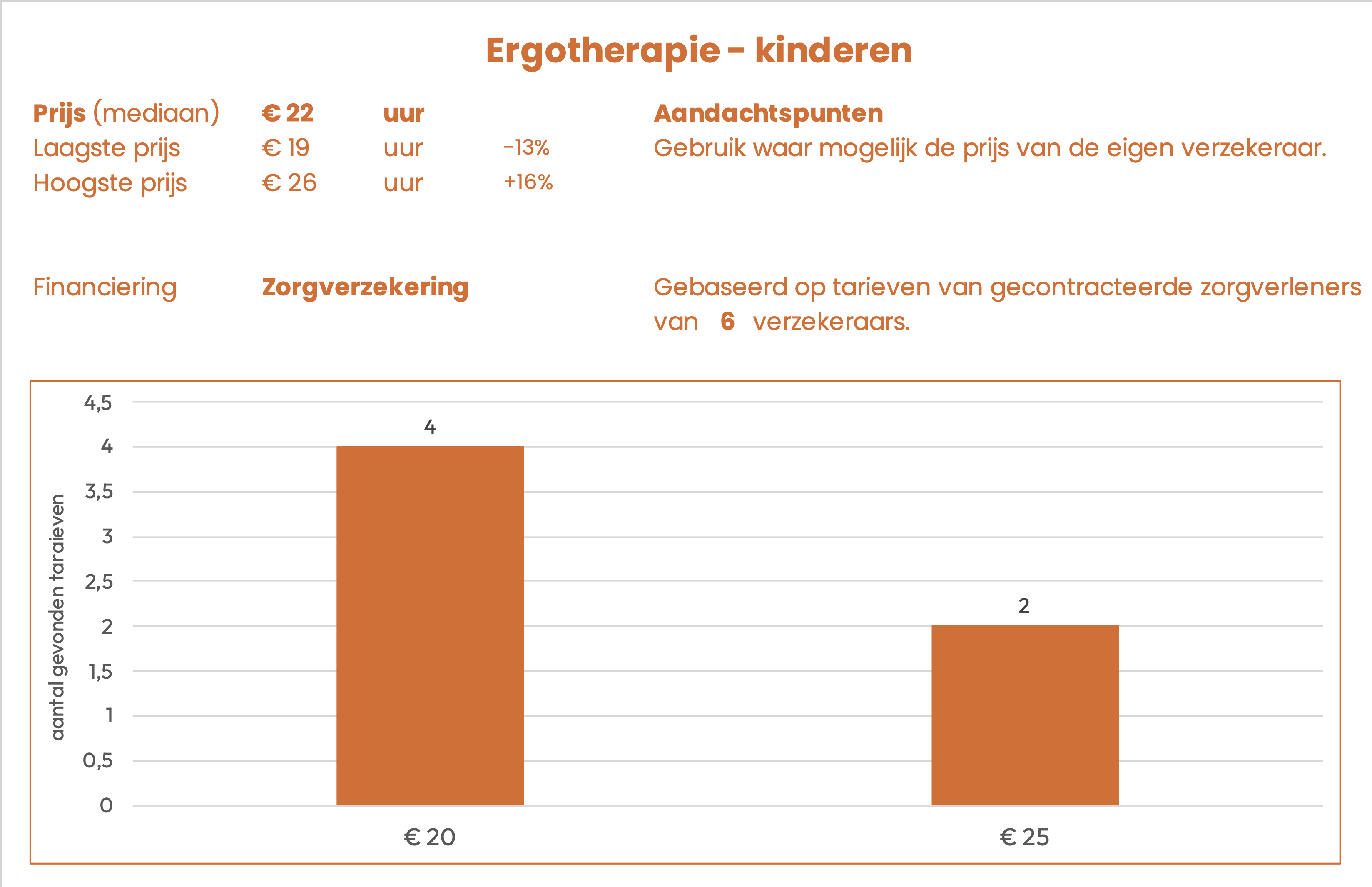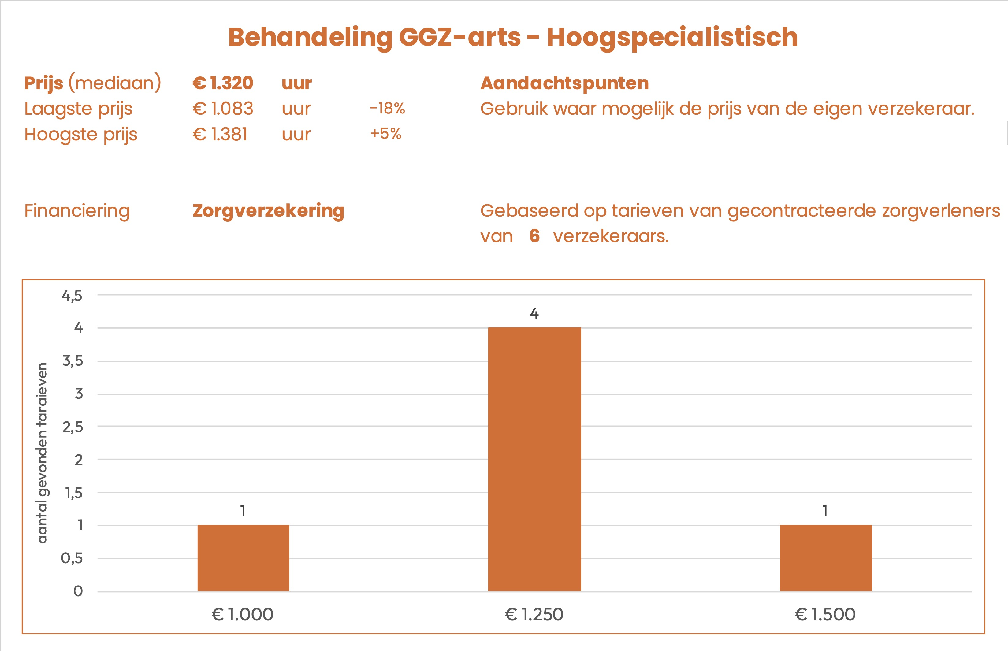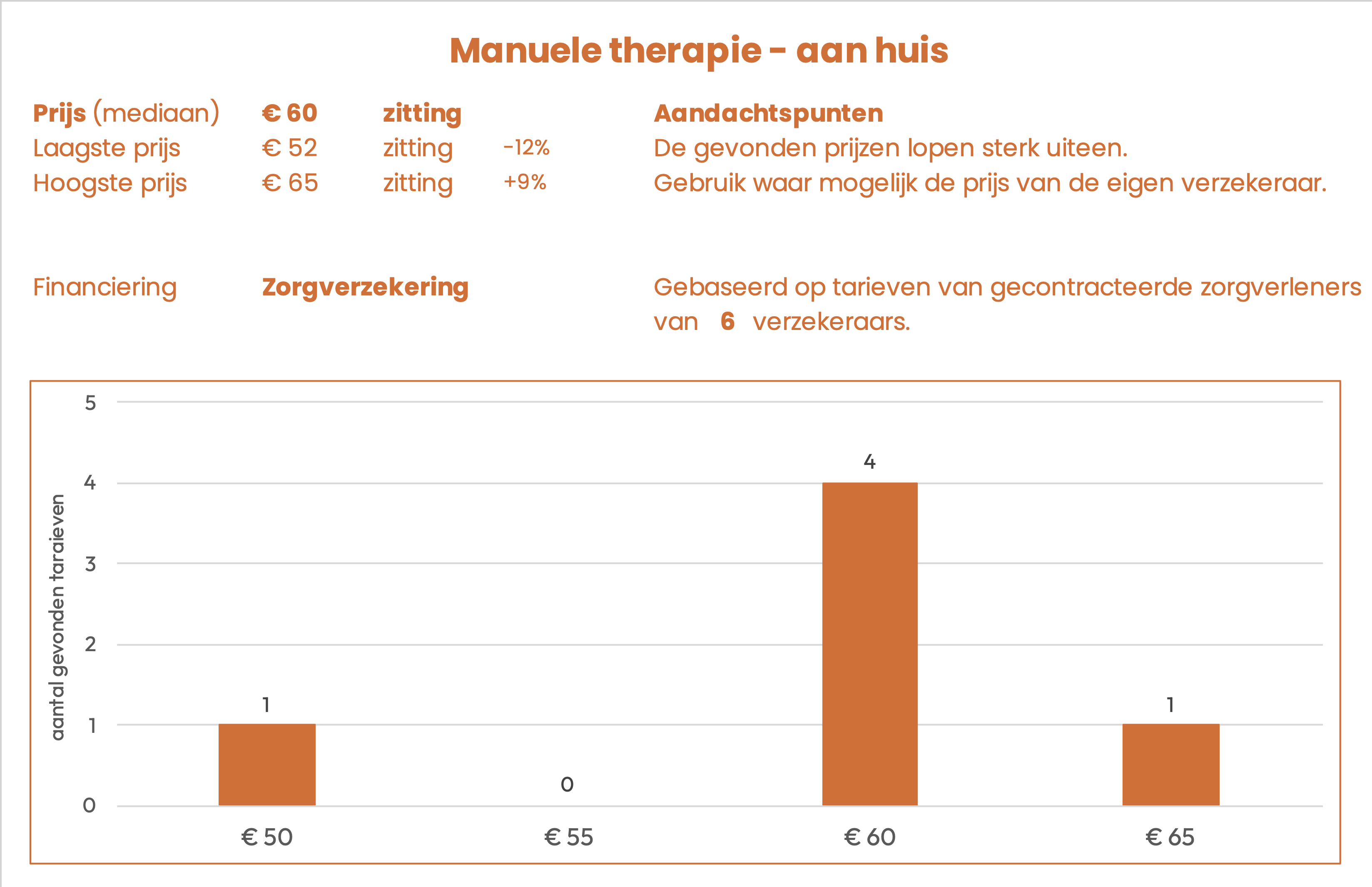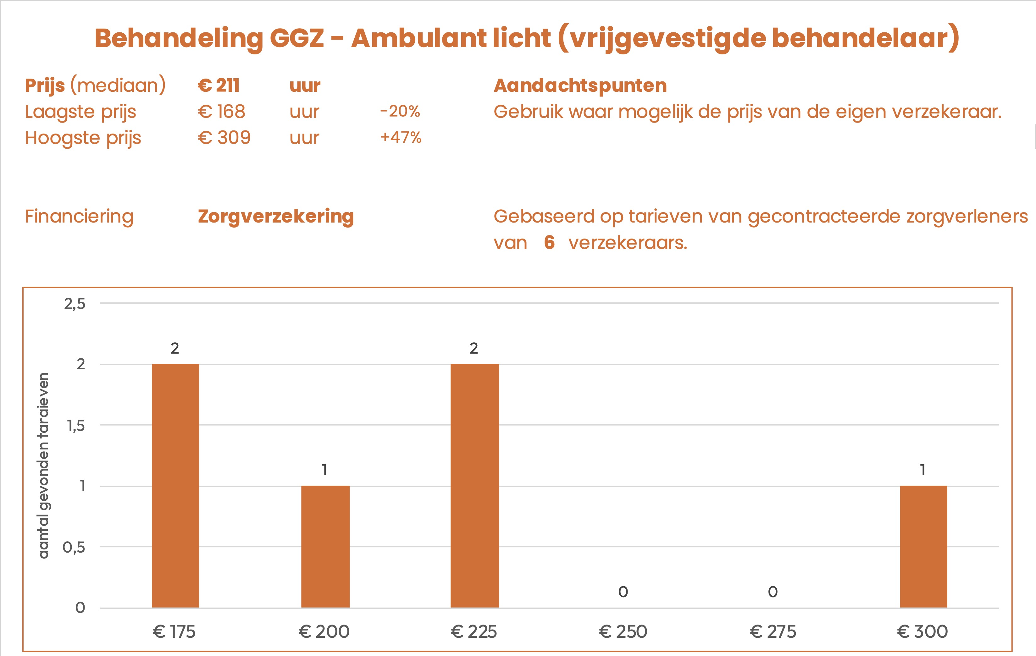 De prijzen zijn afkomstig uit openbare tarievenlijsten van 6 zorgverzekeraars. Het betreft het tarief dat gecontracteerde aanbieders in rekening kunnen brengen.