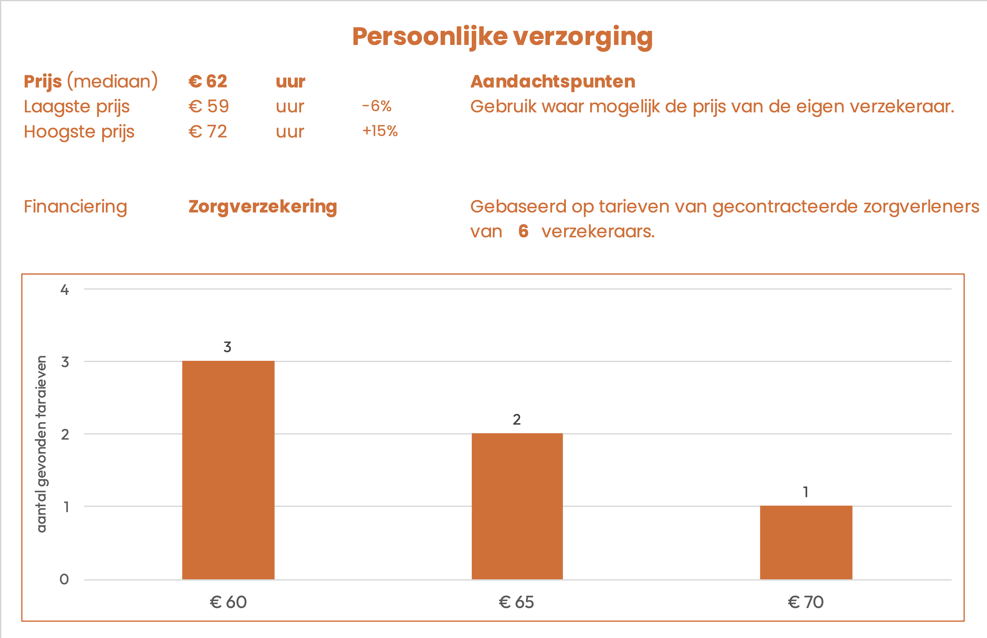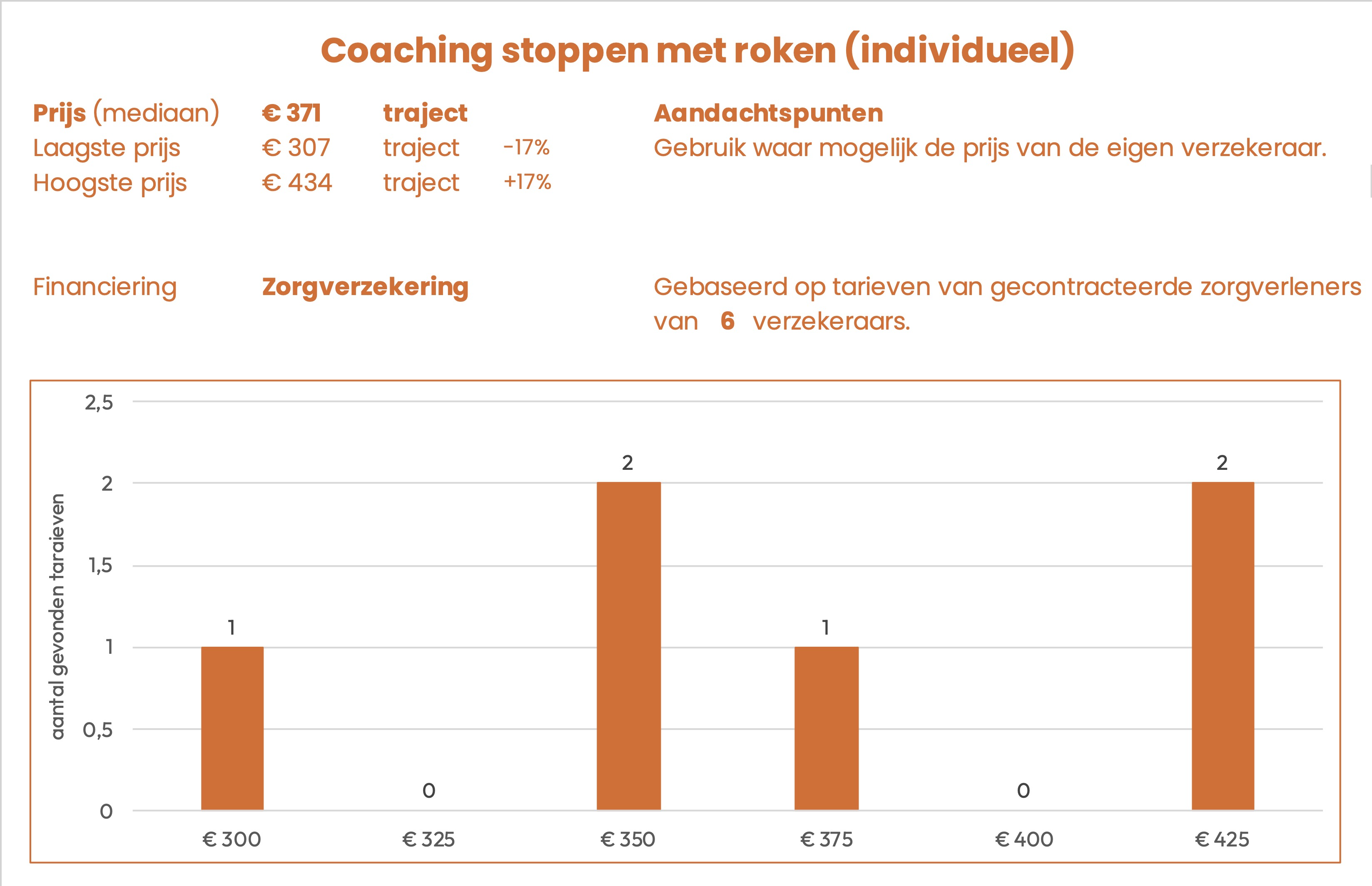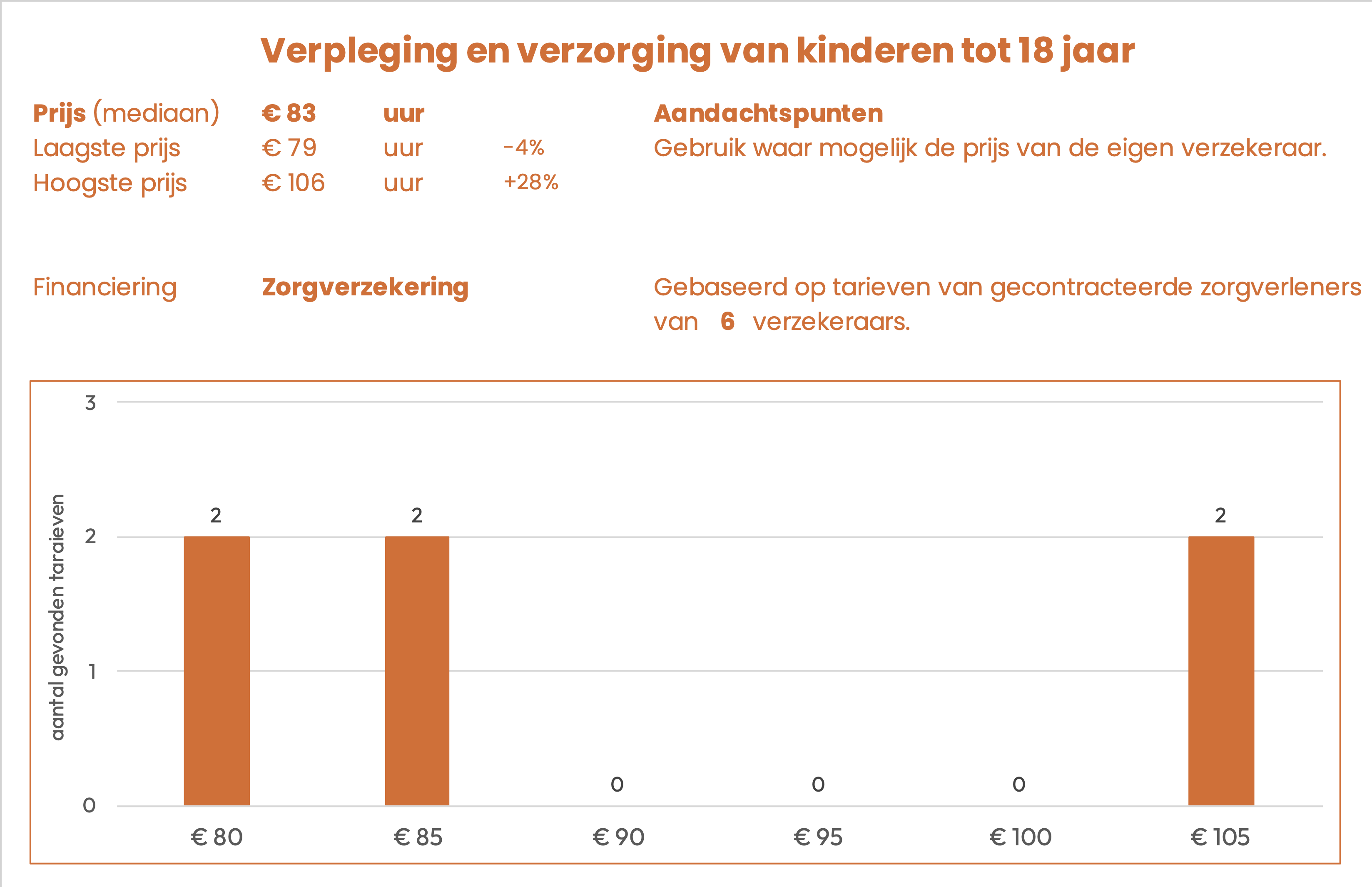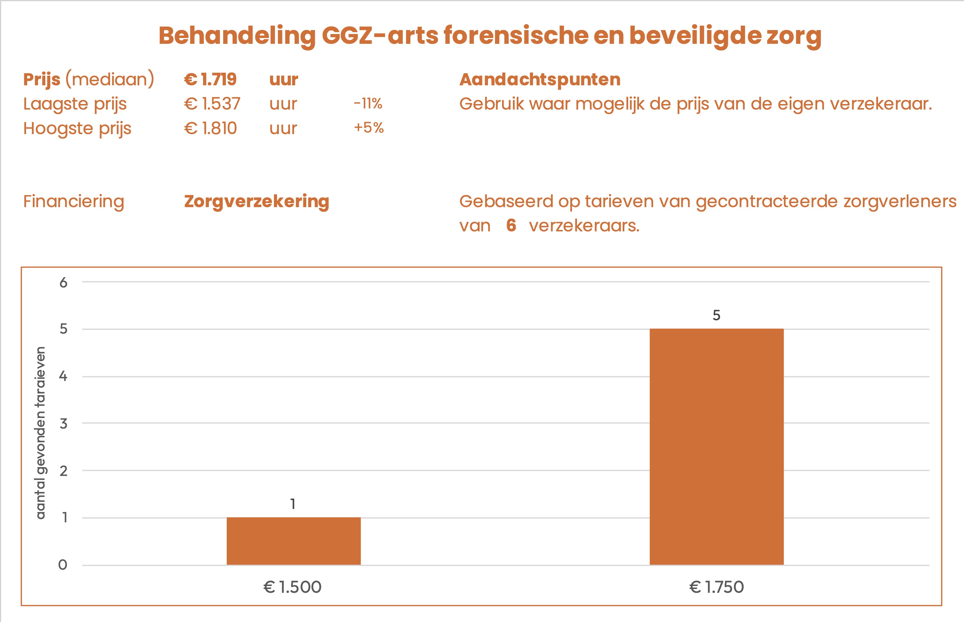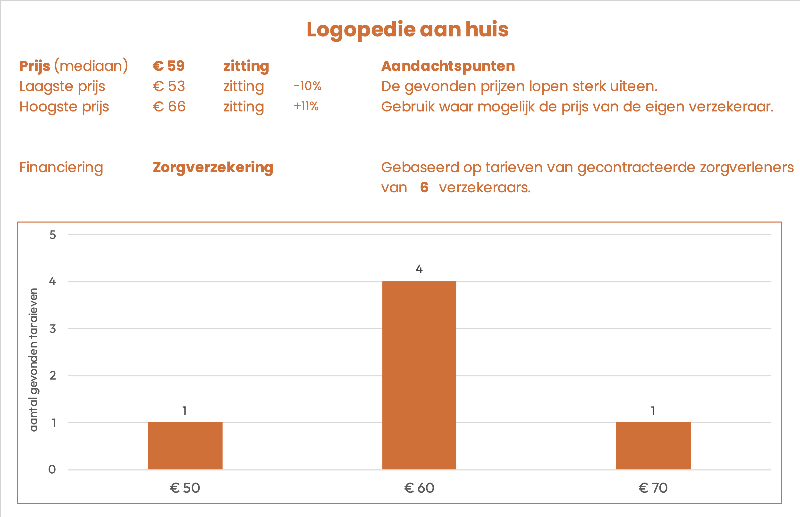 De prijzen zijn afkomstig uit openbare tarievenlijsten van 6 zorgverzekeraars. Het betreft het tarief dat gecontracteerde aanbieders in rekening kunnen brengen.